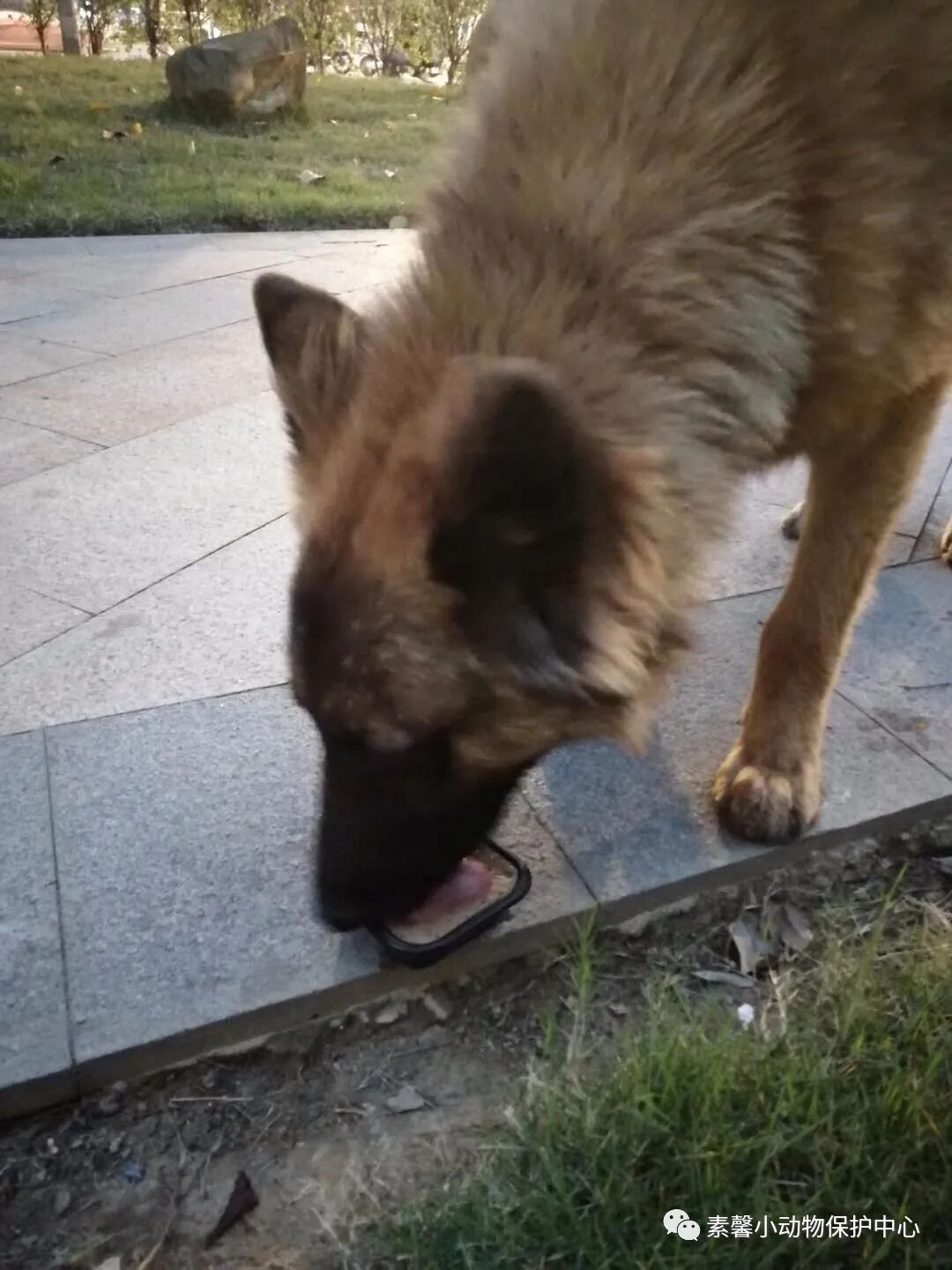 但是过了半个多小时,没看到有人过来找这只德牧。我给它弄了吃的,它狼吞虎咽的吃光,这时候,德牧也慢慢开始跟我熟悉,肯让我摸了。