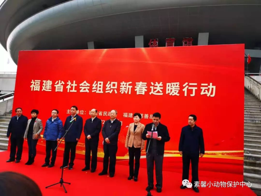 2020年1月16日(星期四)上午福建省民政厅与福建省慈善总会联合启动福建省社会组织“新春送暖”行动出征仪式在福建省体育中心举行。福建省各社会组织派代表参加仪式。福建省素馨小动物保护中心党支部范晓燕书记参加本次活动。